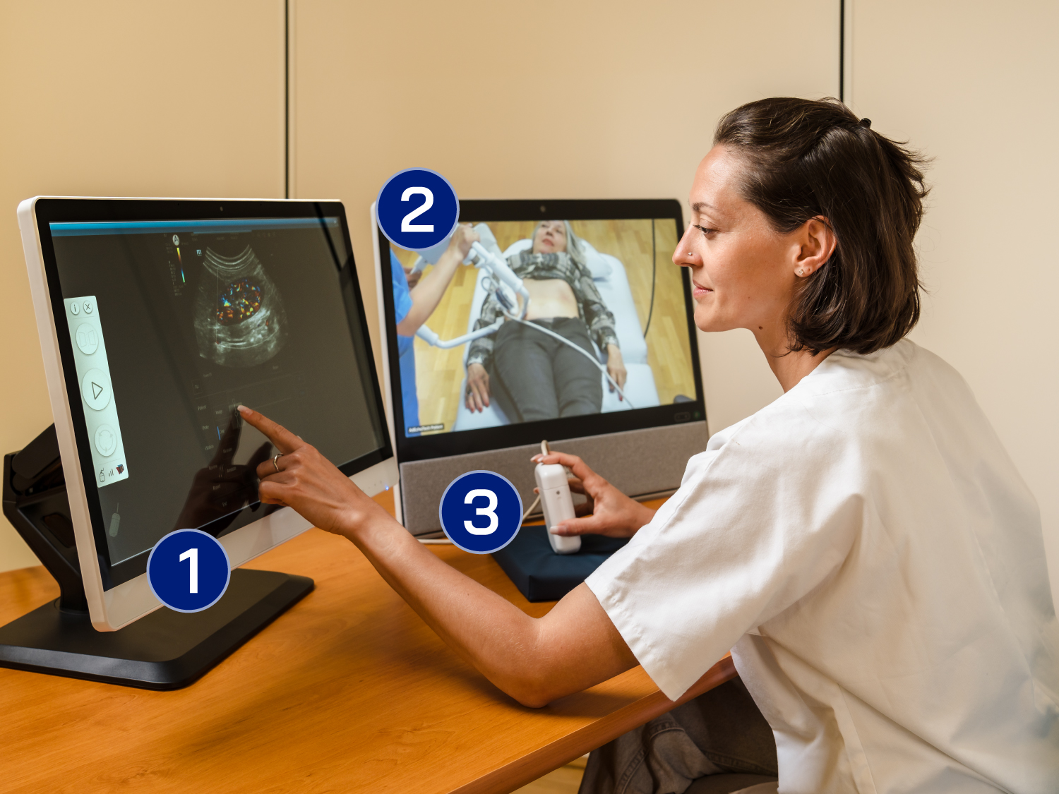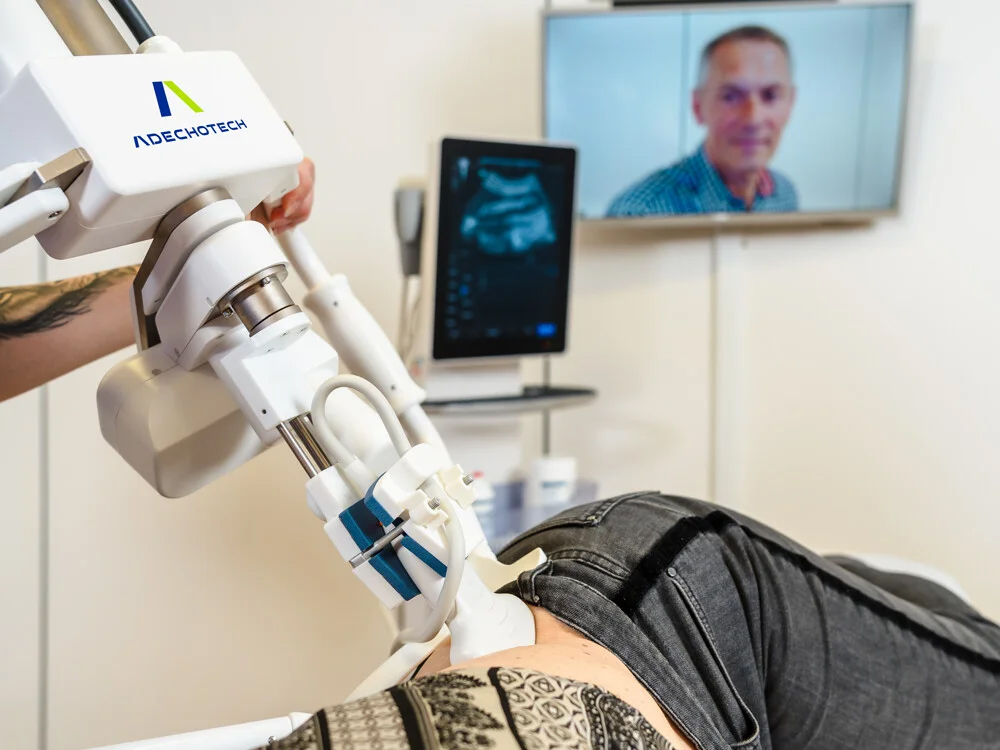Designed and industrialised by AdEchoTech, it allows doctors to perform high-precision examinations by remotely controlling a robotic ultrasound probe in real time, while maintaining full control over the medical procedure and ultrasound settings.